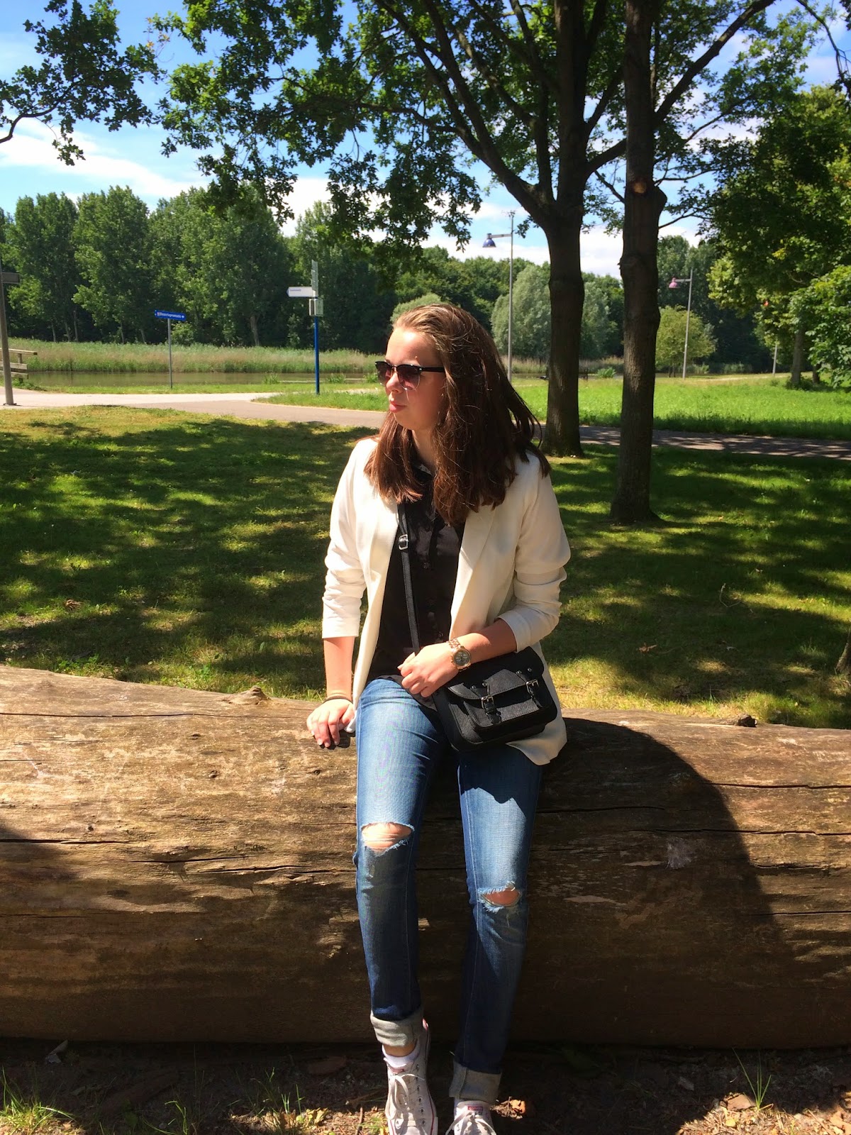 Het is weer super lekker weer vandaag en dus tijd om een rondje door het park te lopen. Daar was mijn vriend zo lief om outfitfoto's voor mij te maken. Ik had niet verwacht dat het zulk lekker weer zou zijn en trok daarom een lange broek en een blazer aan. Pas in het park kwam ik erachter dat die blazer wel wat overbodig was.