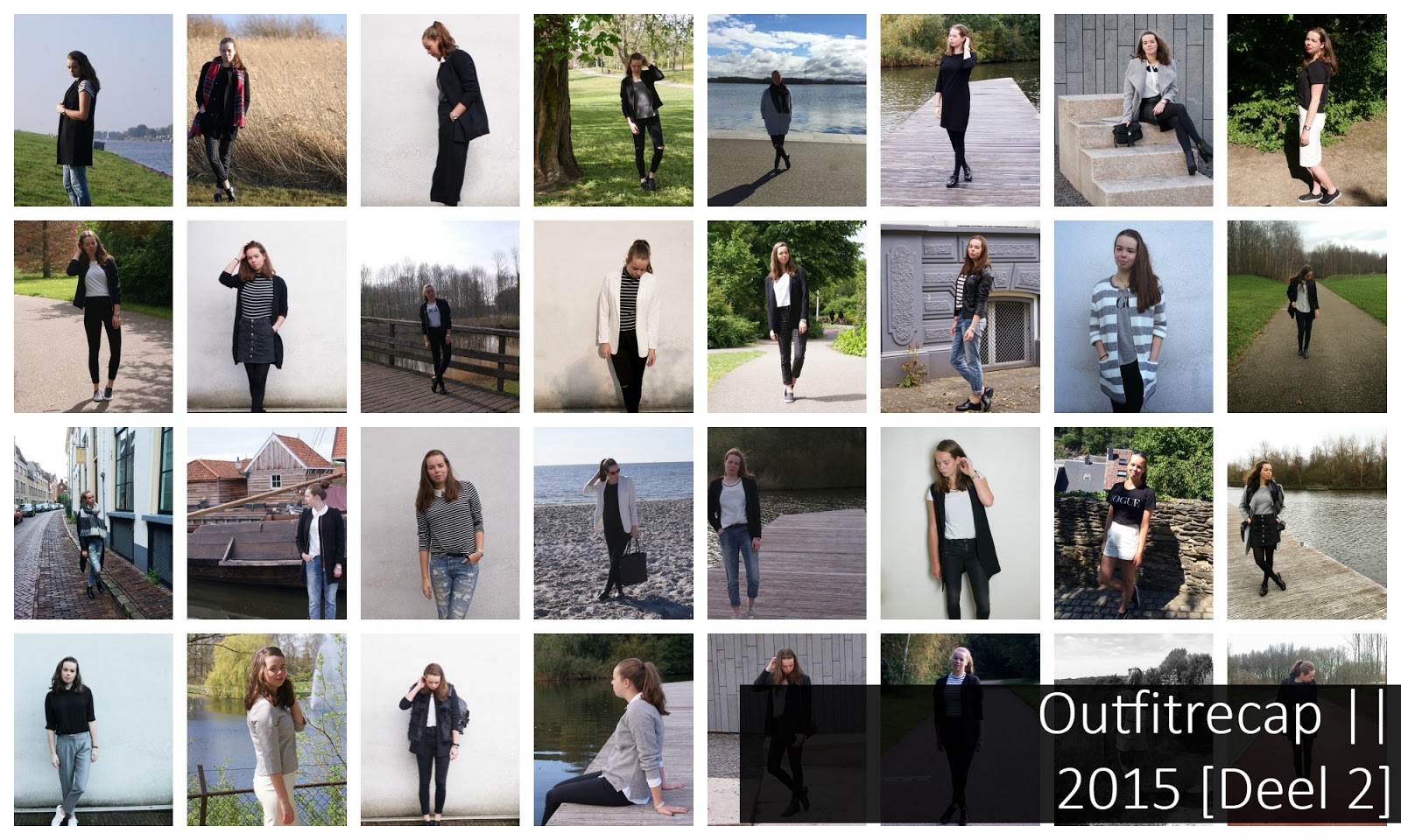 Net zoals vorig jaar doe ik ook dit jaar weer een outfit recap van het afgelopen jaar. Aangezien het er vrij veel zijn, doe ik dat dit jaar in twee delen. Vorige keer kon je deel 1 al bekijken, daarin stonden alle outfits van 1 januari t/m 31 juni 2015. In deze post laat ik outfits zien die ik in het tweede half jaar van 2015 op mijn blog heb geplaatst. Ik vind dit zelf erg leuk om te zien, vooral ook omdat de vooruitgang in de kwaliteit zo goed te zien is. Ik ben op dat gebied echt nog niet op het niveau waarop ik graag zou willen zitten, maar het gaat steeds beter!